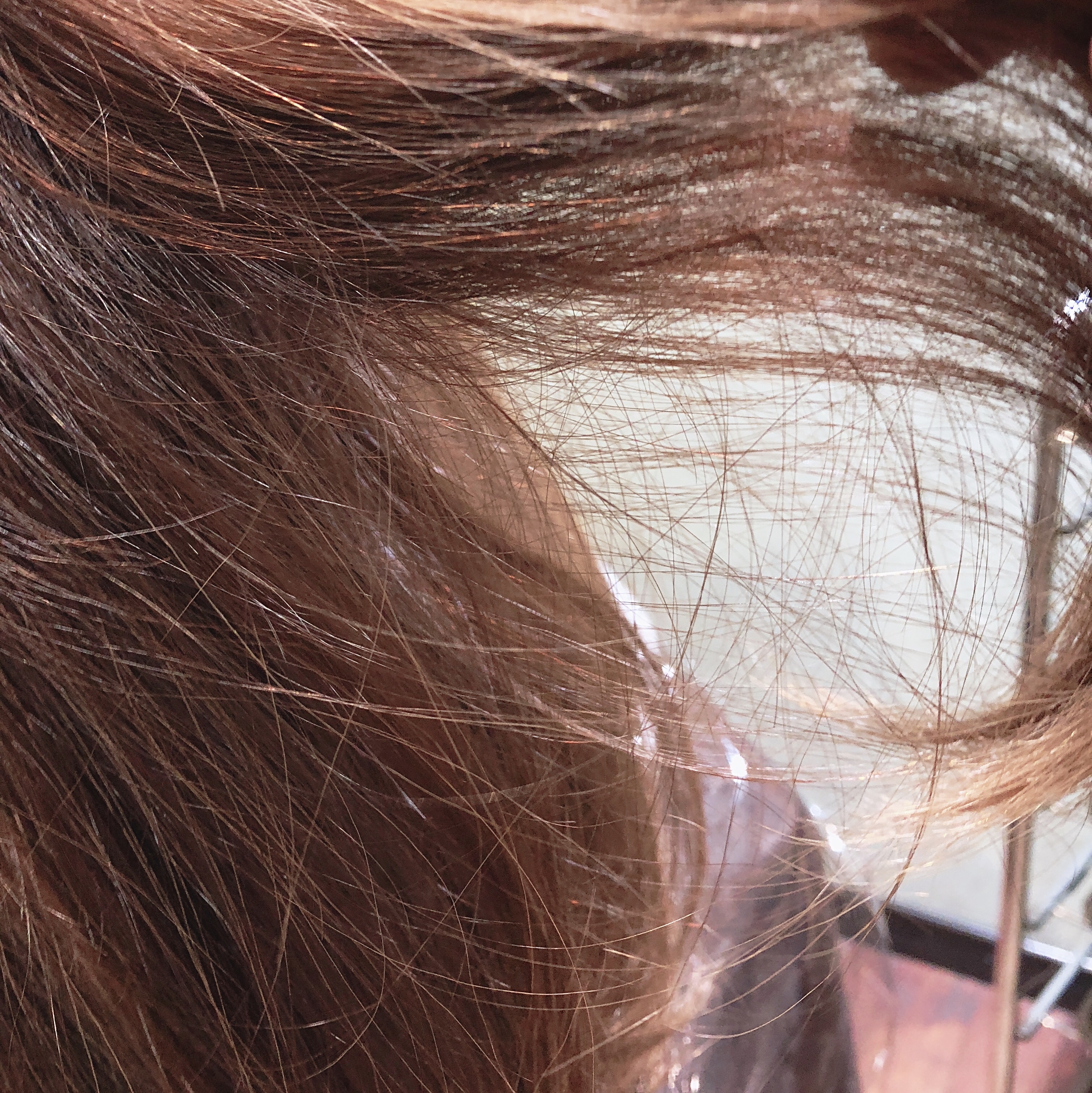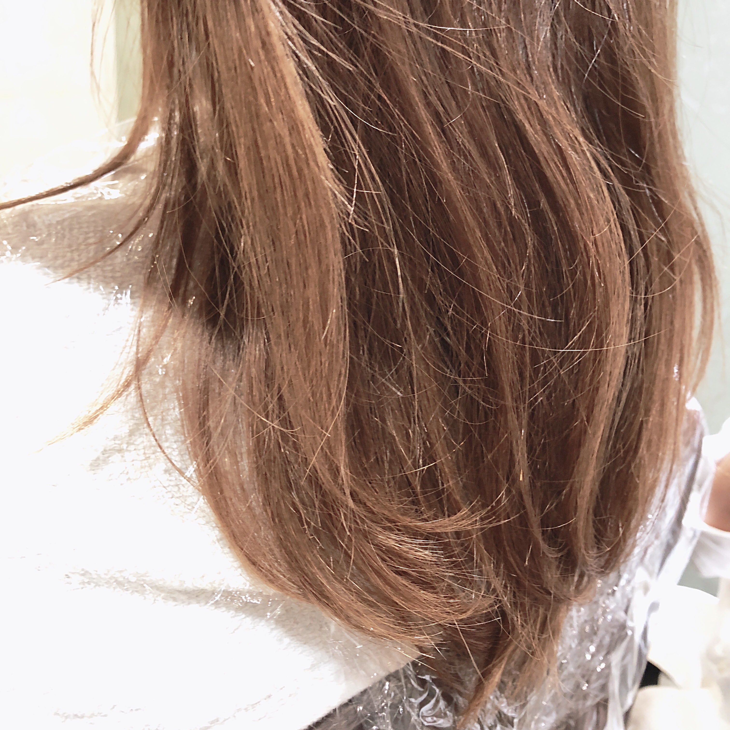 傷みにくい優しいブリーチを使って 前回までのカラーの残留したカラー剤をとります!