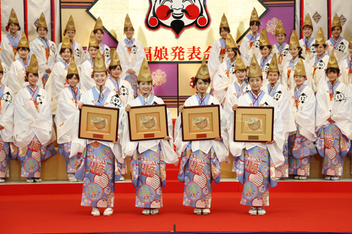 さらに、大阪商工会議所の国際会議ホールで『福娘発表会』があり、40人のなかから3人の福娘代表が選出されます
