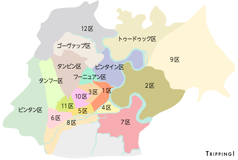 ホーチミンは日本と同じく区で分けられています