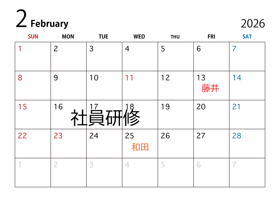 ※2月16日~18日は社員研修の為お休みいただいております。